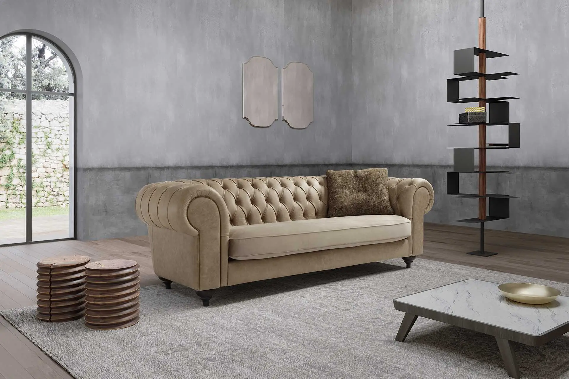 Bristol è un ricercato divano da conversazione che ben si adatta negli ambienti arredati con gusto, sia in stile classico sia moderno. L’applicazione dei bottoni impreziosisce lo schienale ed è espressione della maestria artigiana con cui viene realizzata la lavorazione capitonné. Un altro elemento decorativo che ne esalta lo stile è la scelta del piede in legno di rovere dalla forma caratteristica e dal raffinato color wengé.