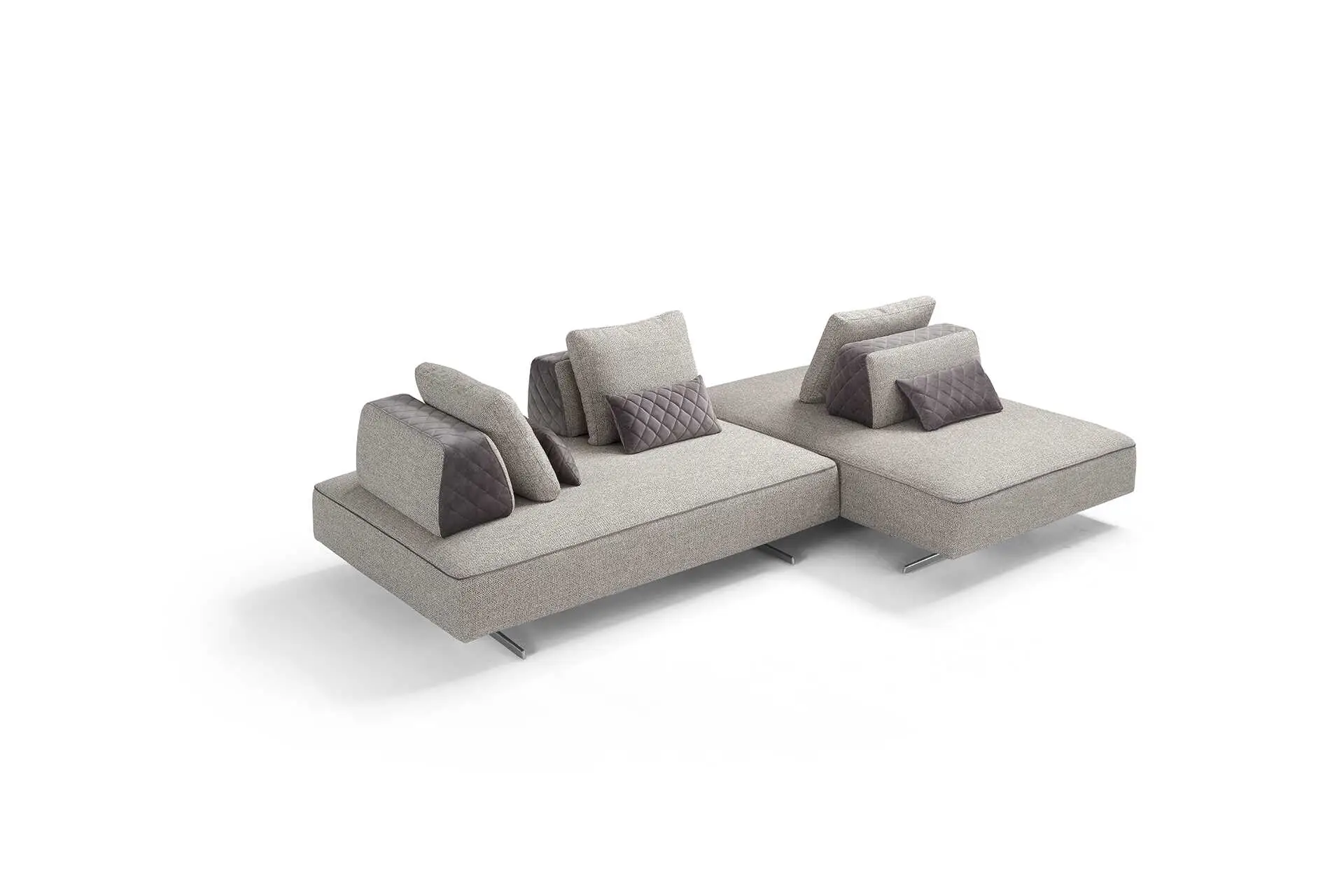 La semplicità degli elementi di base è arricchita dalla innata versatilità nell’abbinare texture e materiali diversi per creare contrasti interessanti. Inserti in pellame e tessuti esaltano lo stile raffinato ma informale del divano.
