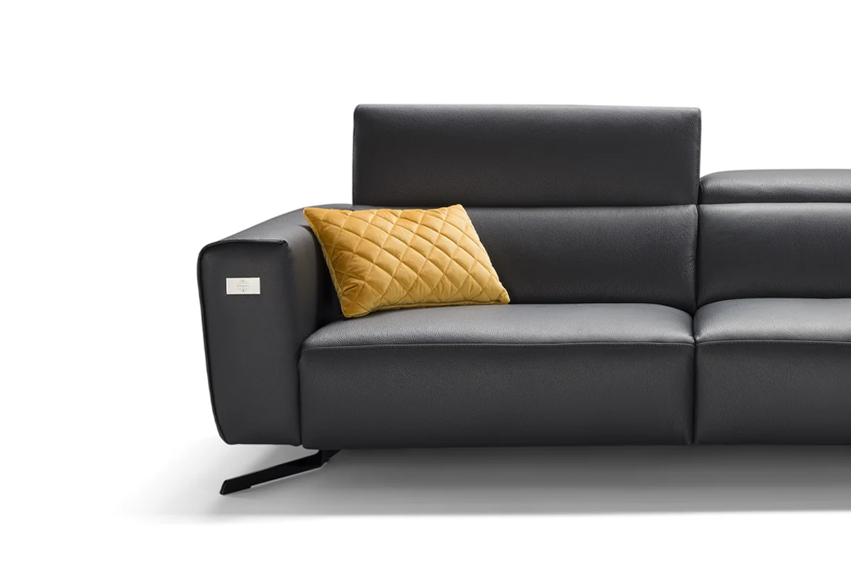 La seduta è ampia e profonda, i poggiatesta reclinabili e il meccanismo “zero wall” permettono di regolare schienale e seduta senza allontanare il divano dalla parete. Ogni dettaglio è pensato per offrire un comfort su misura.