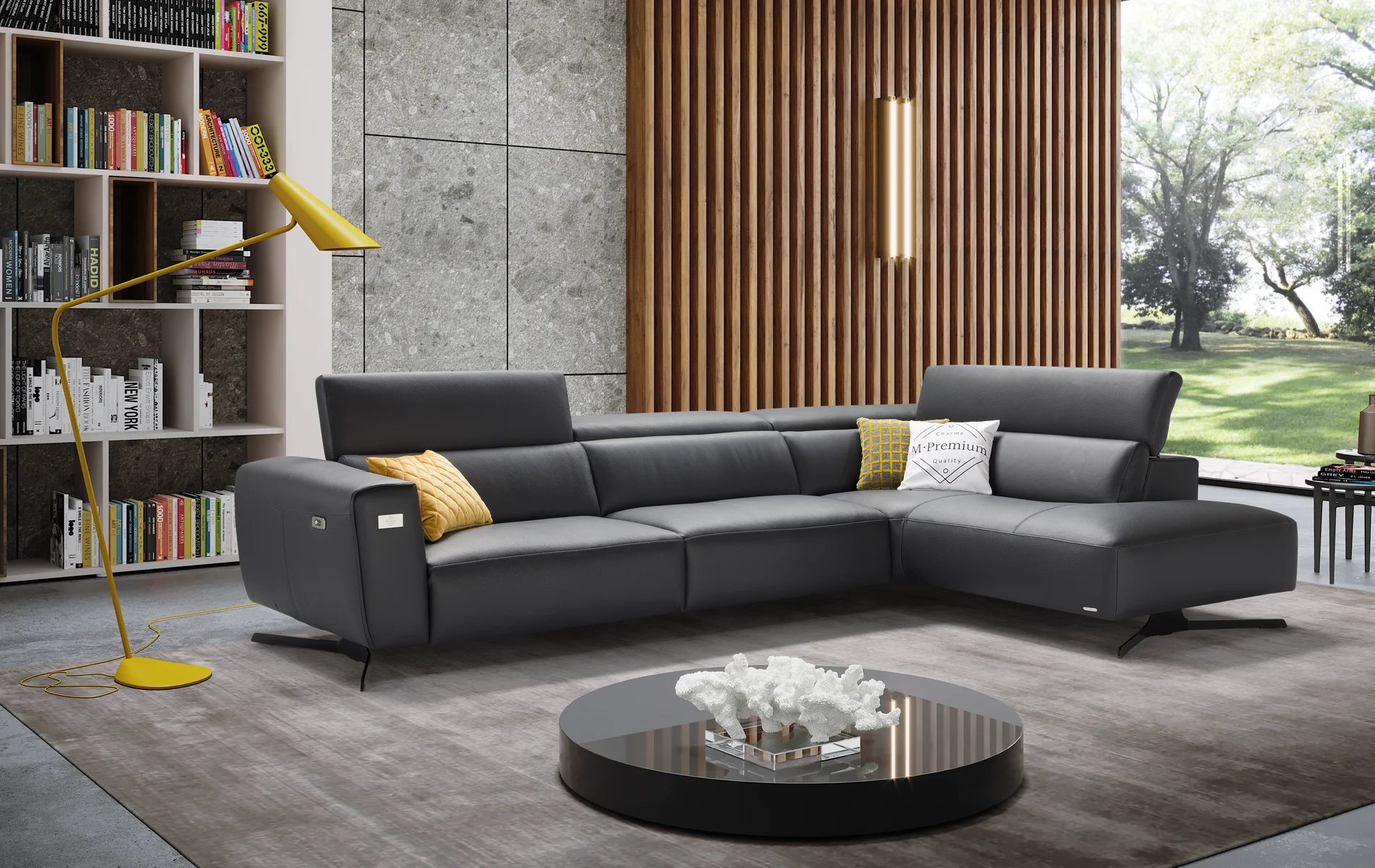Primo modello della collezione M•Premium, Dogma Emerald Edition è il divano pensato per chi cerca il massimo in termini di estetica, tecnologia e materiali. Rivestito interamente in pelle pregiata, integra un impianto audio Bose ad alta potenza e l’assistente vocale Amazon Alexa. A rendere questo modello davvero unico, una targhetta in argento massiccio 925 con veri smeraldi naturali incastonati: un dettaglio che trasforma il design in gioiello.