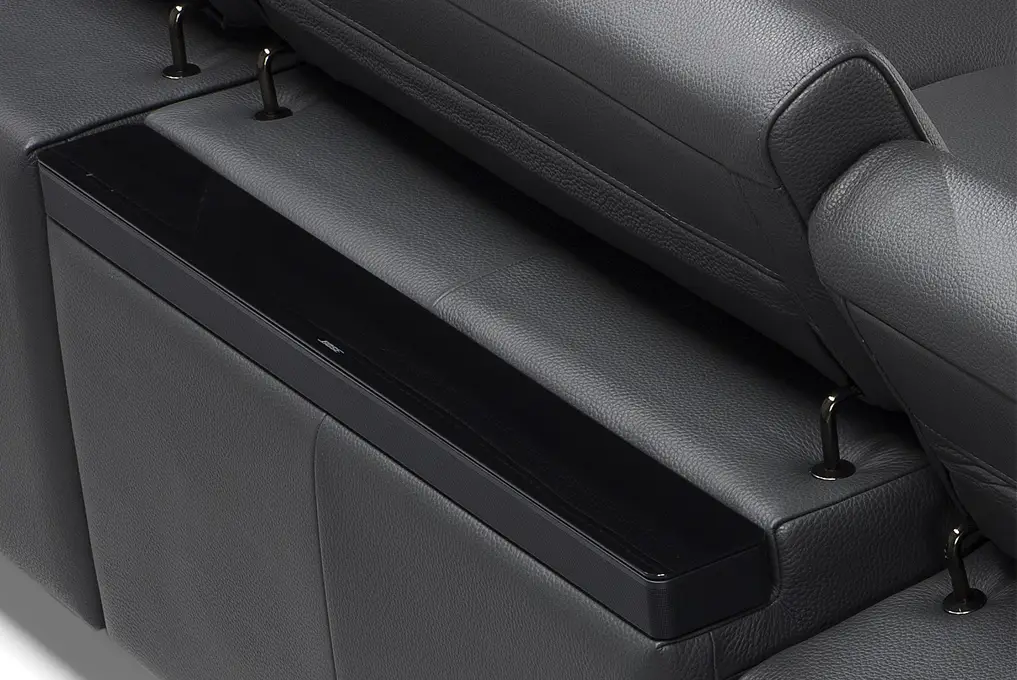 Il sistema Hi-end audio a bordo Bose con ben oltre 1000w di potenza totale permette di amplificare l’audio del proprio apparecchio e godere di un’esperienza sonora molto coinvolgente e davvero di ottimo livello. Incastonato nella parte posteriore del divano, il sistema audio si integra perfettamente con il design e non ne compromette l’estetica.
